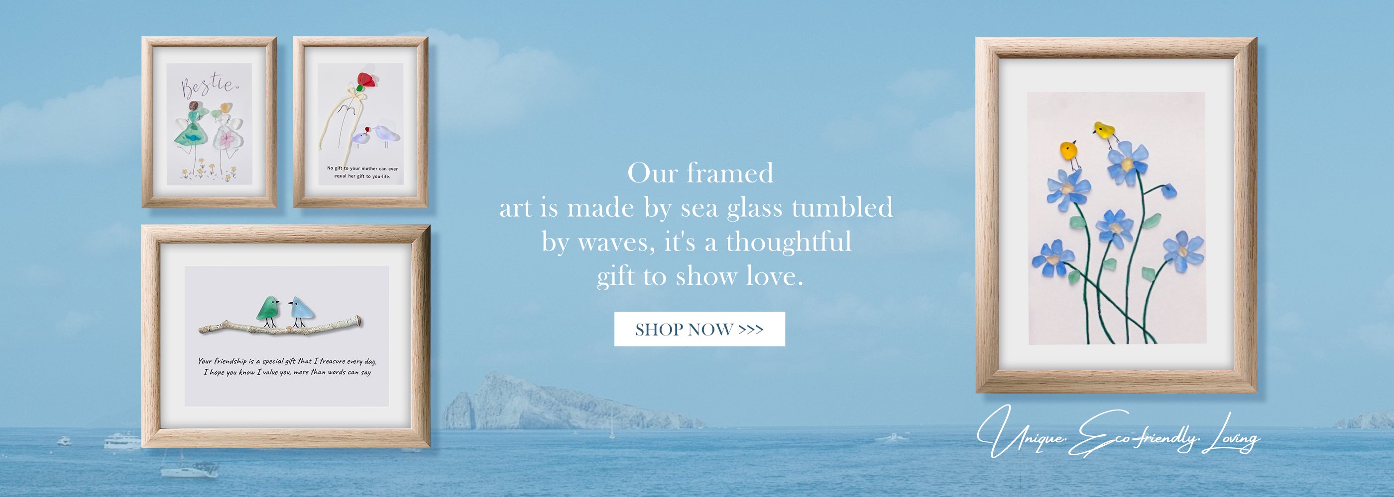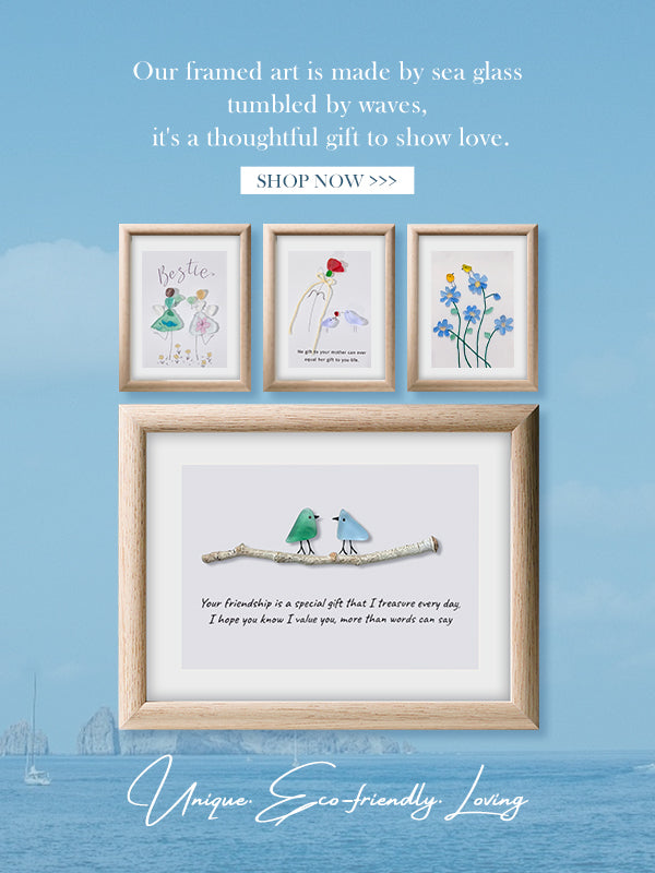 We used to visit many beaches and collect beautiful pieces of sea glass. Leaving them on the shore to eventually break down into the sand can damage the soil. That’s why we transformed these discarded fragments into stunning decorations. We hope more people can appreciate the beauty of nature and help protect our planet.