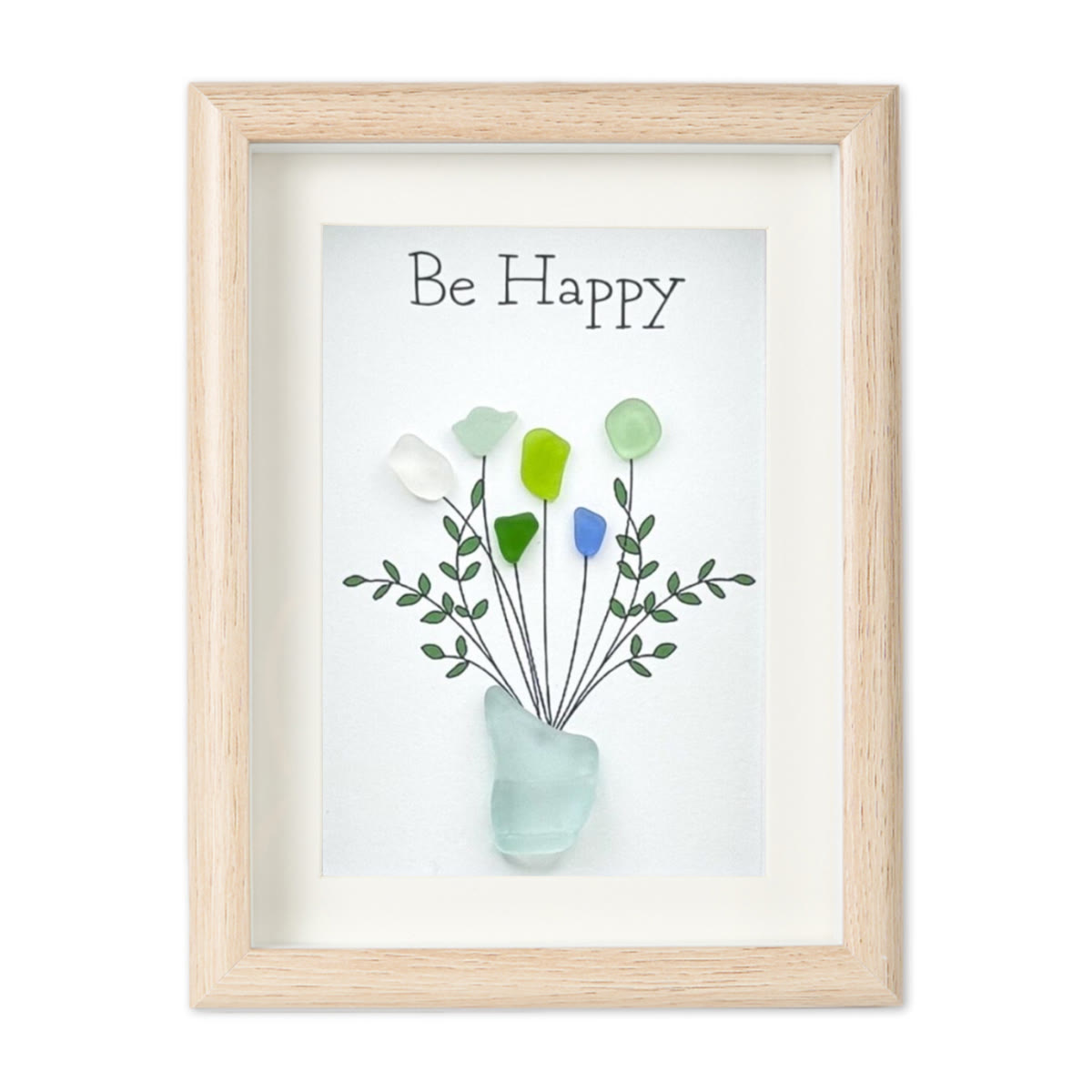Be Happy Flower Bouquet Sea Glass Framed Art