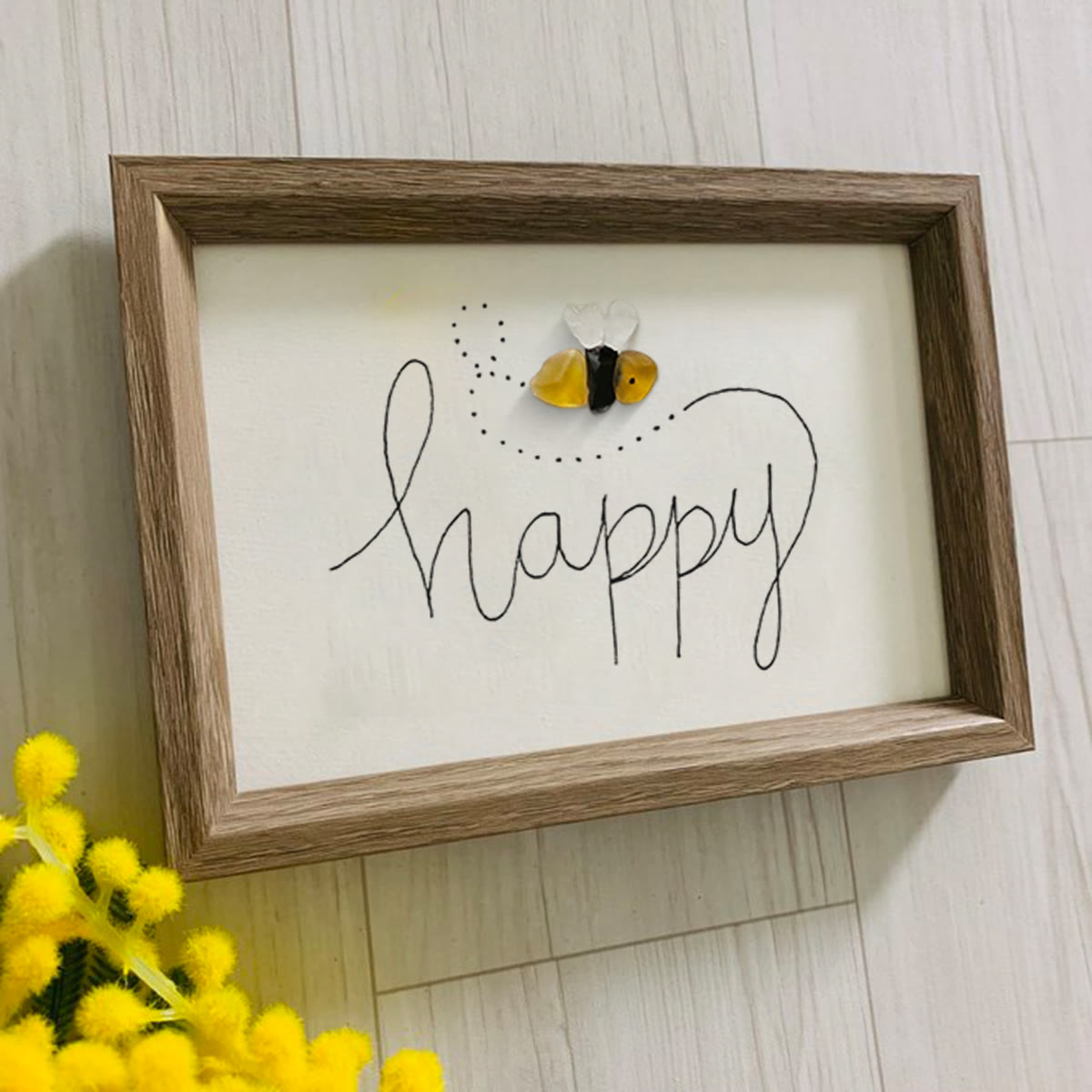 Bee Happy Sea Glass Card Artwork With Frame