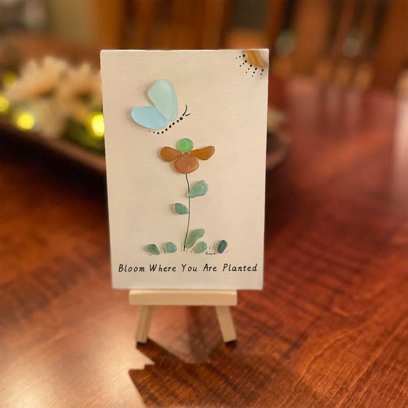 Bloom & Butterfly Inspirational Quote Sea Glass Framed Art