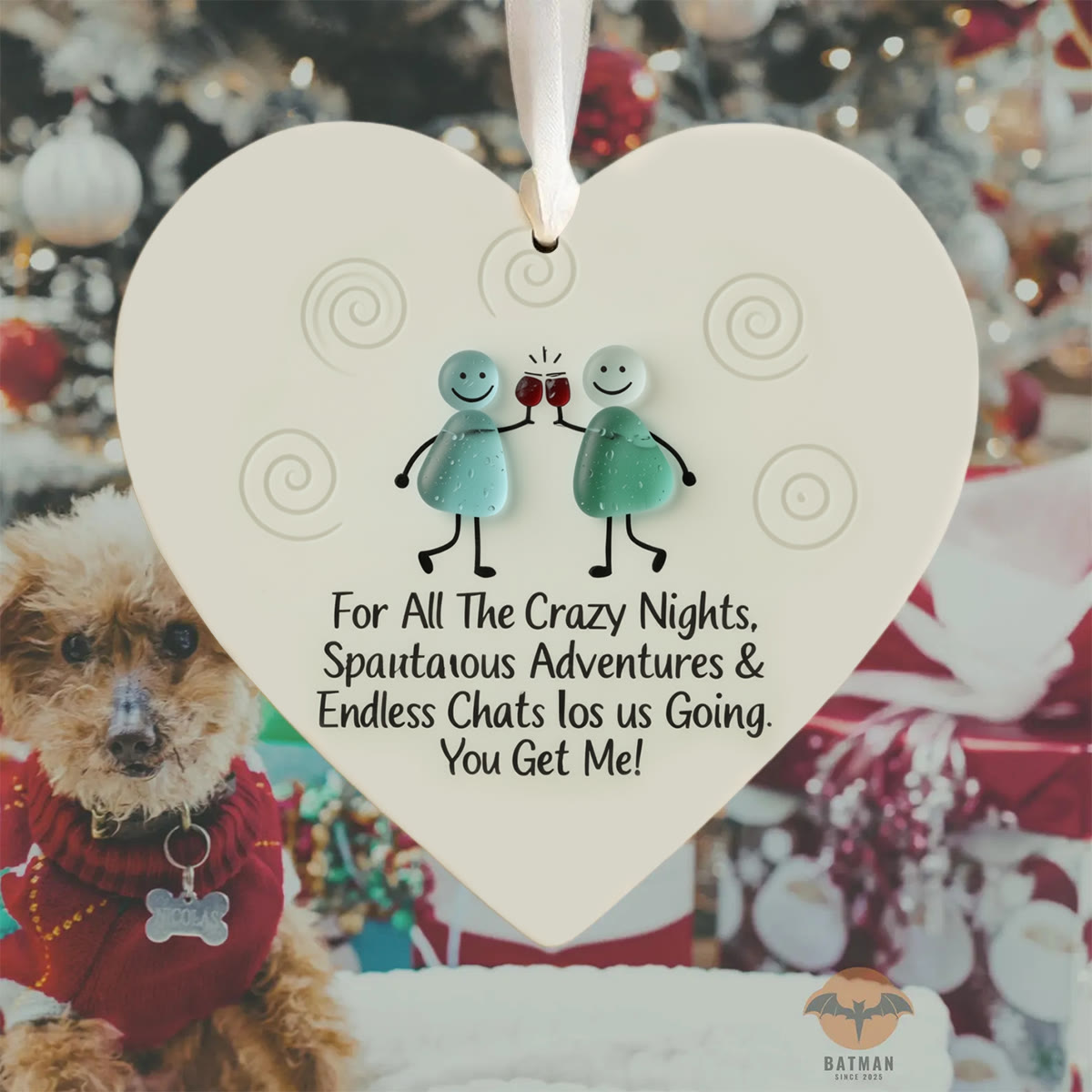 🥂Celebrate the joy and spontaneity of friendship with our delightful “Cheers to Friendship” Sea Glass Hanging Ornament. This unique piece beautifully captures the essence of fun-filled nights and cherished moments with friends through its charming design featuring two smiling figures clinking glasses, crafted from sea glass.