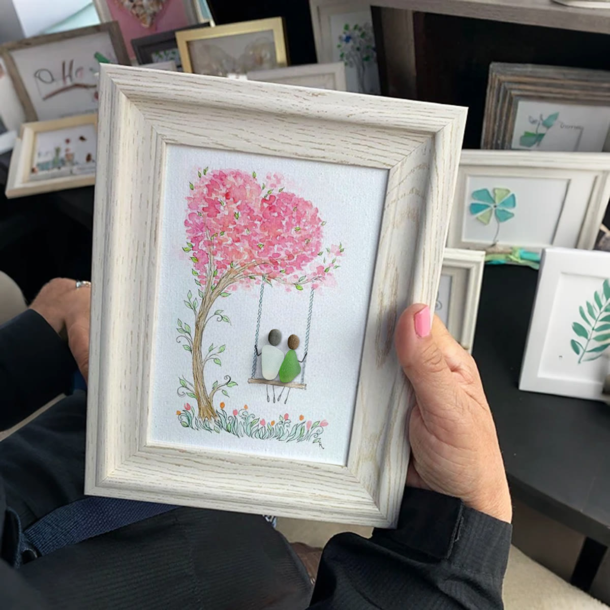 👩❤️💋👨Celebrate the tender moments of love with our Sea Glass Framed Art, depicting a couple gently swinging beneath a graceful love tree.❤️🌳