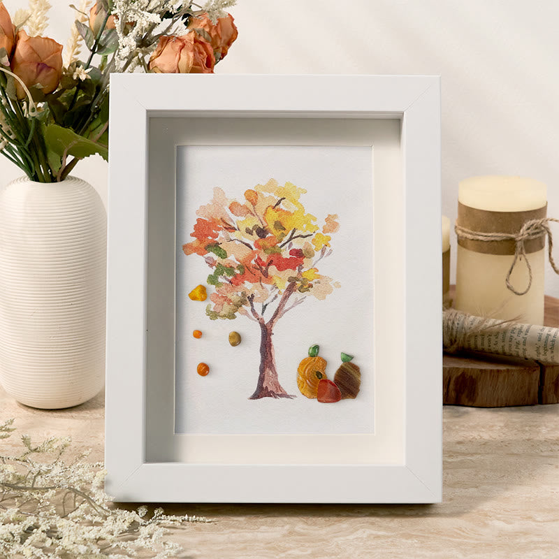 Fall Art Autumn Leaves Pumpkin Sea Glass Framed Art