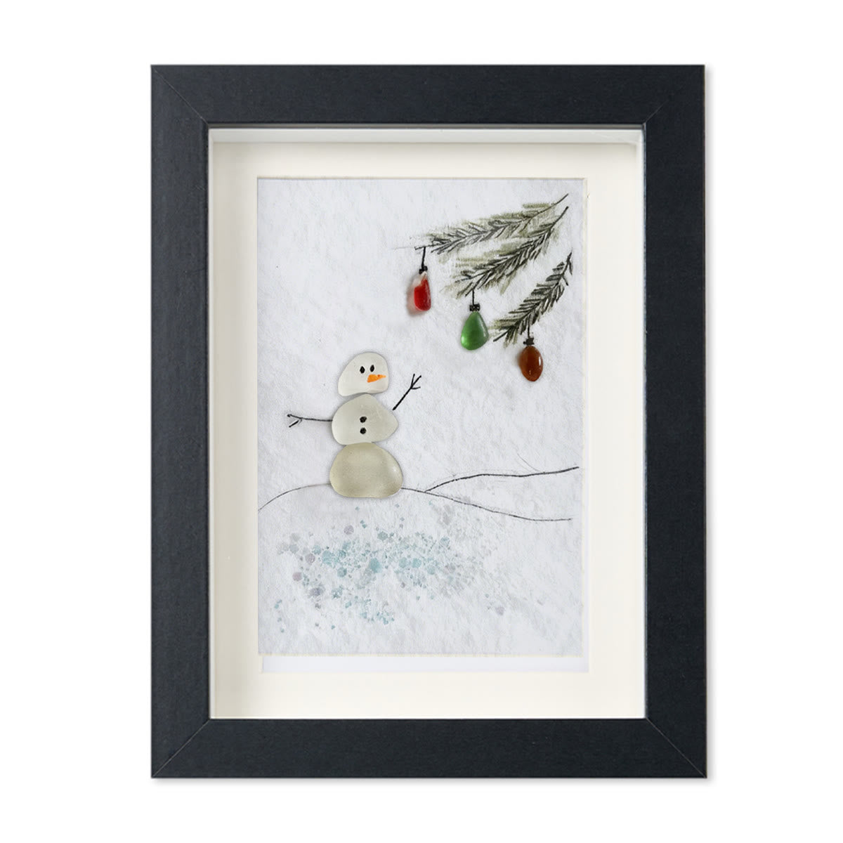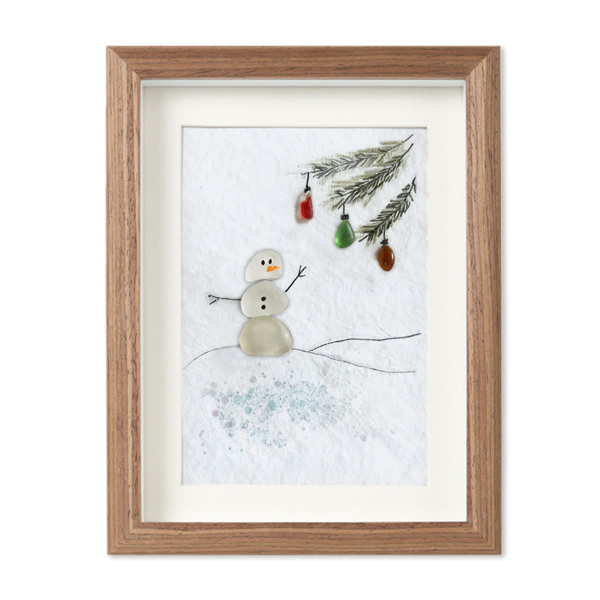 Festive Frost Delight Snowman Sea Glass Framed Art