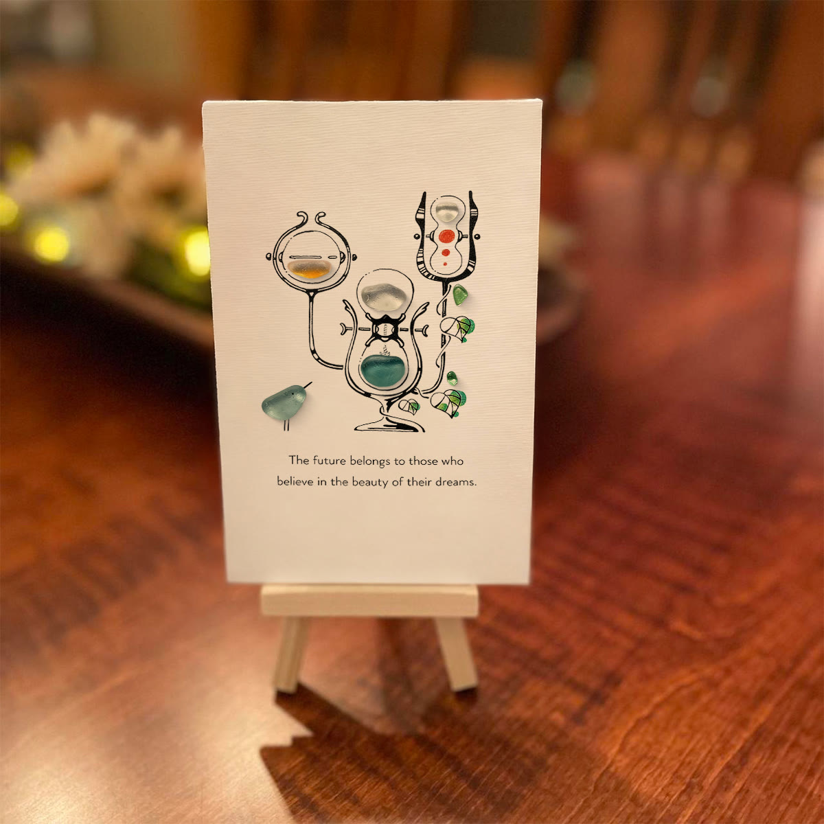 🌠Beneath the art, the quote "The future belongs to those who believe in the beauty of their dreams" turns this decor into a heartfelt reminder—perfect for brightening desks, shelves, or bedroom walls. It’s not just art: it’s a tiny, tactile celebration of hope & coastal warmth.