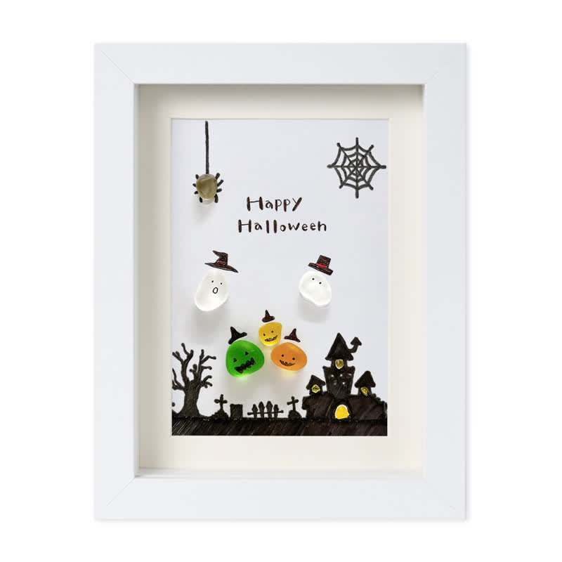 Ghost Happy Halloween Sea Glass Framed Art