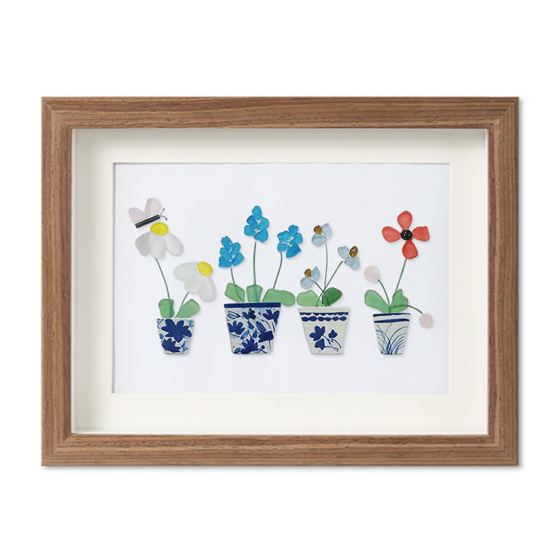 🌹🌻🪻Brighten any space with the natural beauty of this Handmade Flowers Sea Glass Framed Art. Each delicate flower is carefully crafted from vibrant pieces of sea glass, gently shaped and arranged to create a stunning floral design that captures the essence of nature’s charm. The soft, translucent colors of the sea glass shimmer beautifully, bringing a touch of ocean-inspired elegance to your home décor.