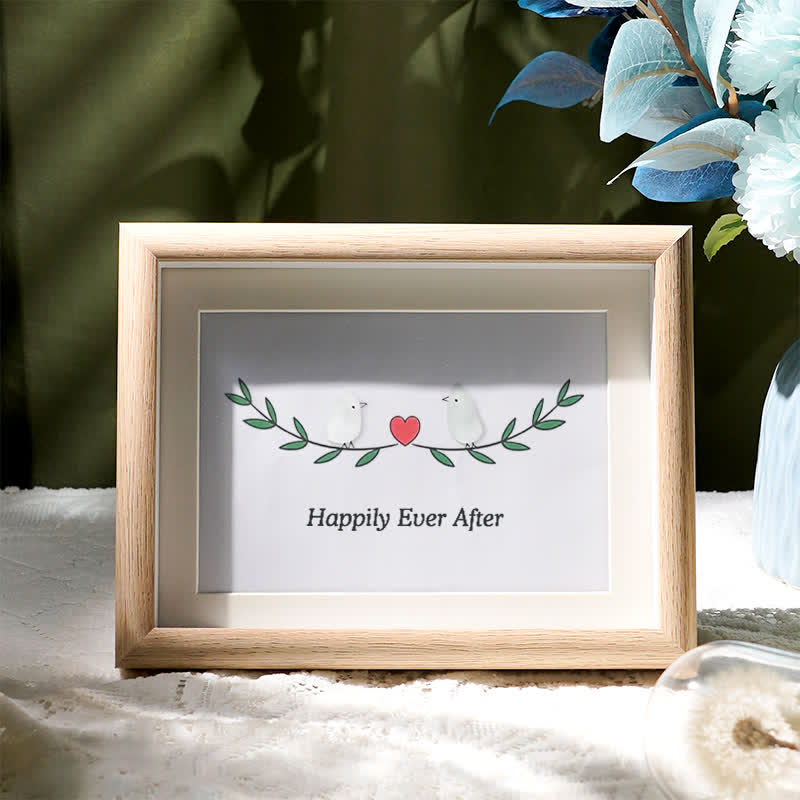 Happily Ever After Lovebirds Sea Glass Framed Art
