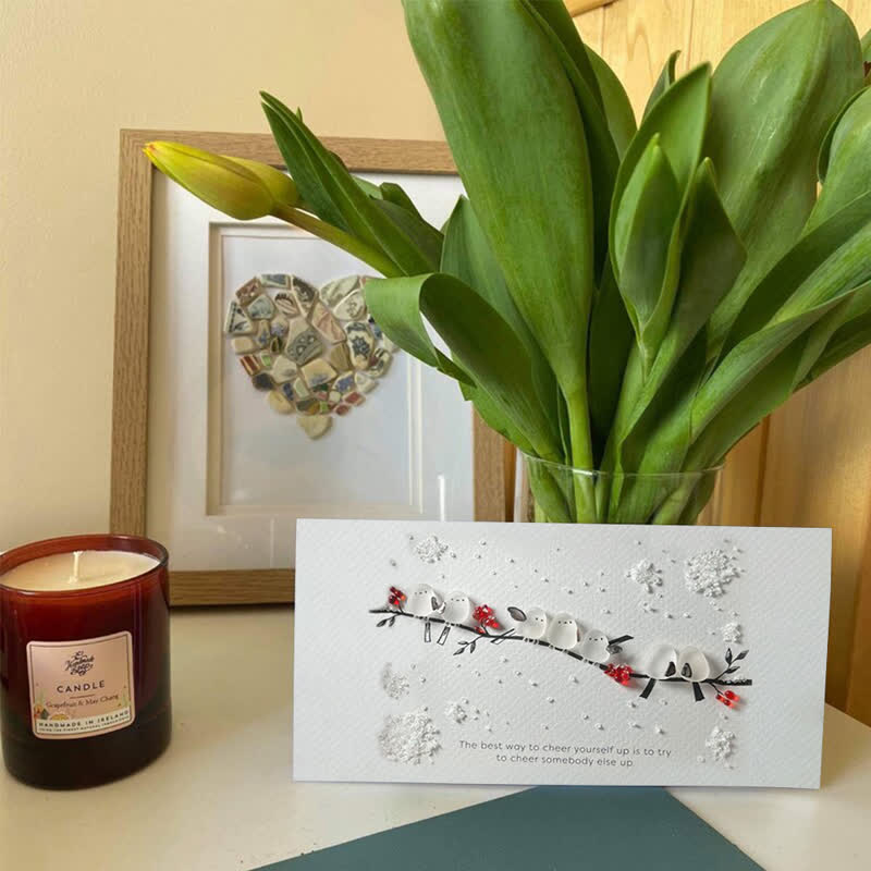 ❄️🐦This art frame features adorable birds crafted from sea glass, perched on a delicate branch adorned with red berries and surrounded by intricate snowflake details. The design blends the natural charm of sea glass with a wintery scene, creating a cozy and whimsical vibe.🌊