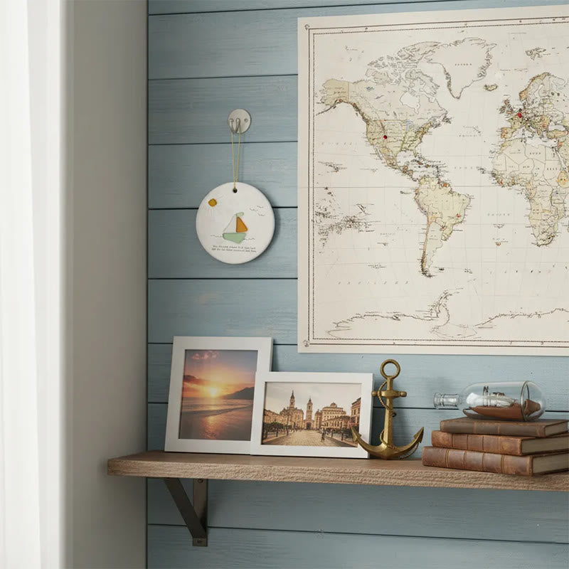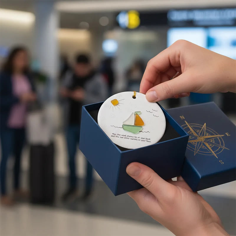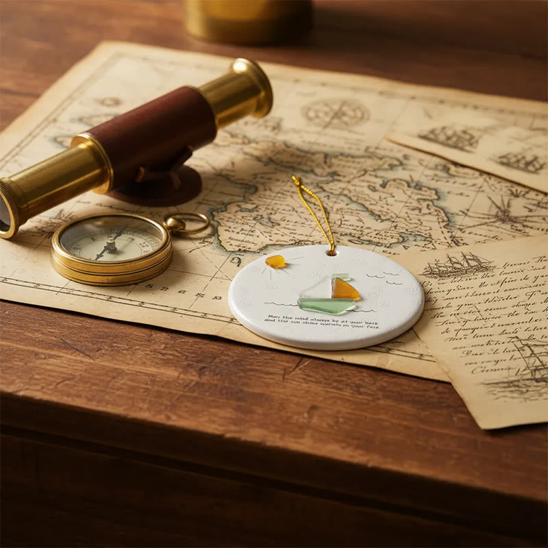 Sailboat Best Wish Sea Glass Hanging Ornament